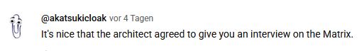 Da kann man diese Aussage auch mal aus dem Blickwinkel interpretieren, dass natürlich kein einziger Gedanke, Idee, Einfall, das Denken als Allgemeines überhaupt, "hier" faktisch Statt findet. Da ja diese wirklichkeit "gehostet" sein muß: woanders ("in other -" edward fredkin). Insofern natürlich hier auch kein Greifen, Begreifen, Essen, Trinken, Frieren, Hungern, Gehen, Laufen oder sonstwas hier faktisch Statt findet. Dann aber die Aussage von bruno gröning sozusagen eine Binsenweisheit wäre, welcher man hinzu setzten könnte