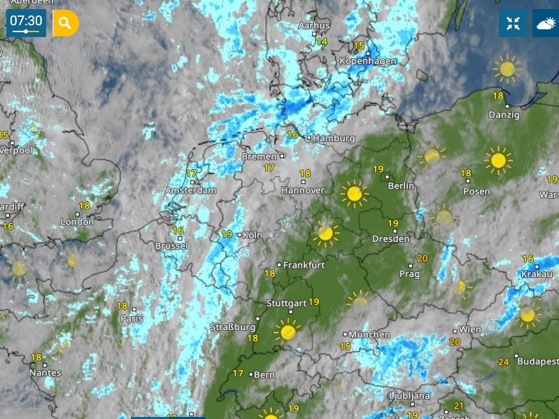 07.16 Uhr, und noch ist es draußen schwarz, wie die Nacht. Hier