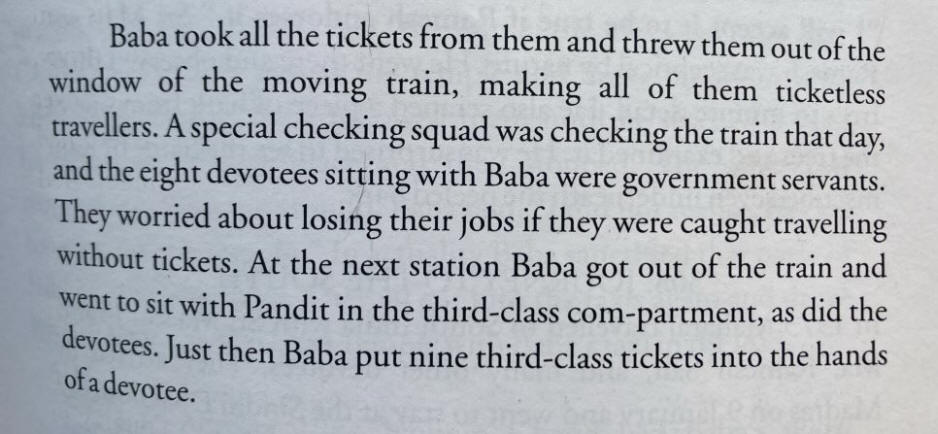 "Occasionally Gurudev would get on a tain. If he was asked for a ticket, he