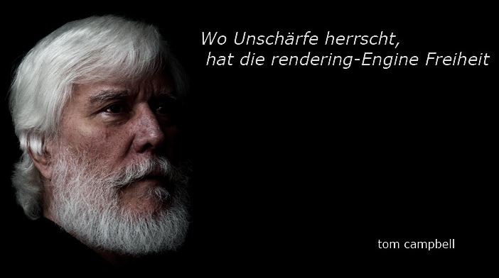 Es hat enorme Konsequenzen, wie auch Vorteile, wenn man den Aufbau von wirklichkeit vom "formalen" Ende her verstanden, oder jedenfalls so halbwegs verstanden hat. Die Konsequenzen sind natürlich besser Implikationen zu nennen, doch die ganze Geschichte so halbwegs verstanden, überhebt man sich schnell vieler Fragen, welche sich nur dadurch ergeben, dass man wirklichkeit aus den physischen Brillengläsern heraus betrachtet. So brauche ich nicht unbedingt "Evolution", die wesen, von pflanze über tier bis zum mensch können auch einfach aus dem Nichts "run-Button" gedrückt, hier begonnen haben, wie in jedem anderen Videogame auch. Dass es auf irgendeine Art eine Form von Evolution gegeben haben muß, von vielleicht anfänglich platonischen Körpern bis dann hin zu lebewesen, ist schon klar, nur bezweifle ich, dass diese Evolution so statt finden muß, wie sie tom campbell beschreibt.