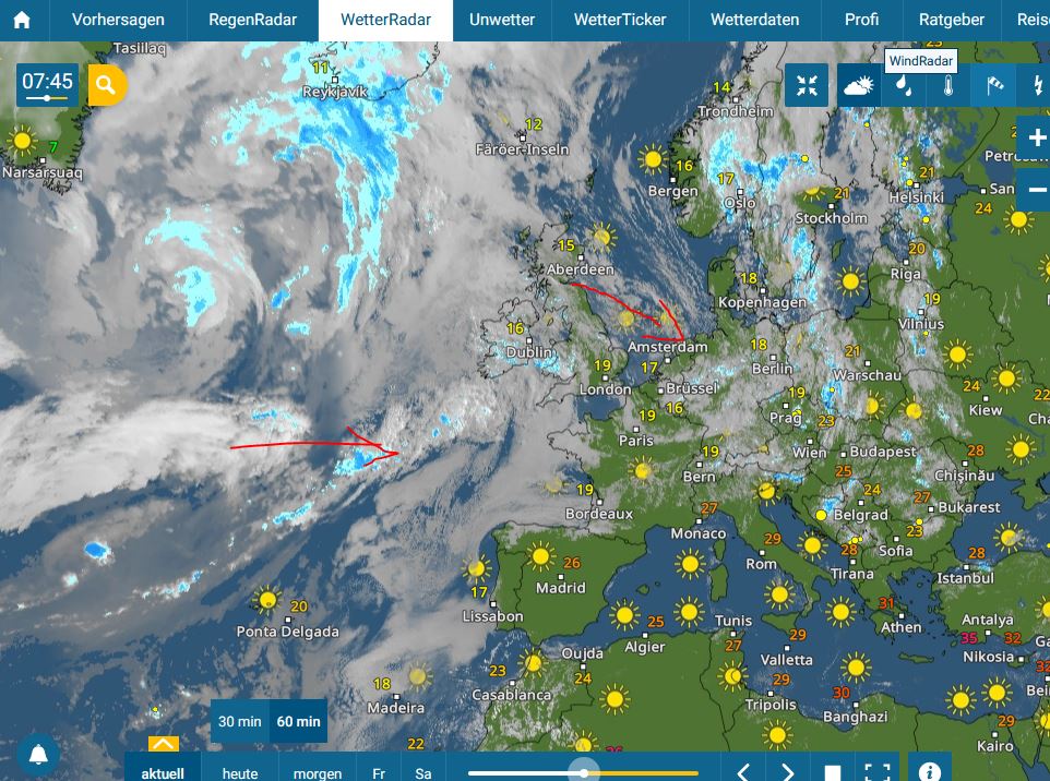 gestern wird es stabil sonnig bleiben zwischen den 3 großen "Wetterblöcken",