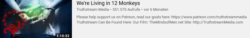 Und auch wenn ich mich wieder mal wiederhole, auch noch bin ich froh, dass ich relativ früh, durch die 12-Monkeys-Doku von melissa und aaron dykes gestolpert bin, ich glaube ich habe diese gleich gesehen, als sie heraus kam, also um und bei dem 24.03.2020