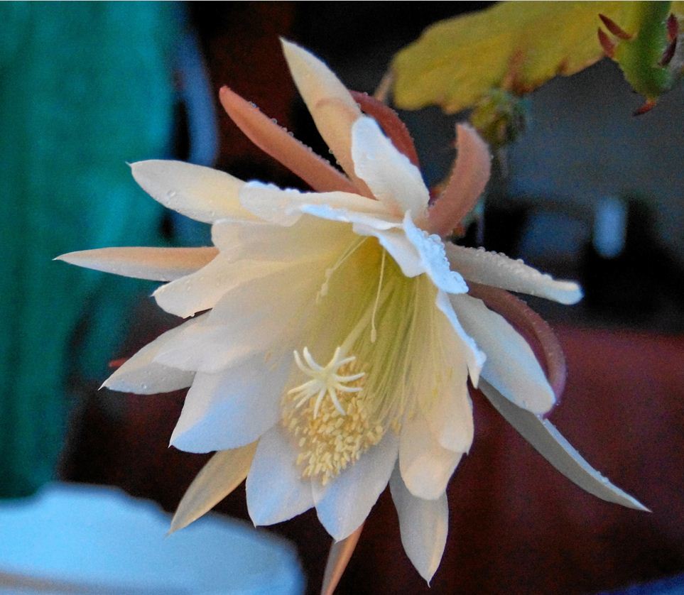 So, jetzt zieht es sich wieder leicht zu. Übrigens, das ist ein Blattkaktus, da kommen erst wunderschöne weiße Blüten, riesig.