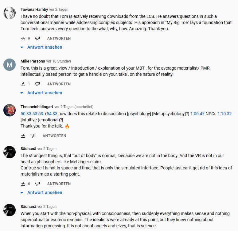 Immerhin, die doch tiefe "Rosa-Färbung" von wirklichkeit, wie sie bei tom campbell doch immer gut zu sehen war, weicht doch ein wenig mit der Zeit einer tieferen Einsicht (es lässt sich ab und an gut heraushören), dass es hier im Kern nicht darum geht, dass es allen (im kantischen Sinne der Bequemlichkeit) "gut" geht, sondern eben wirklichkeit auch Mechanismen