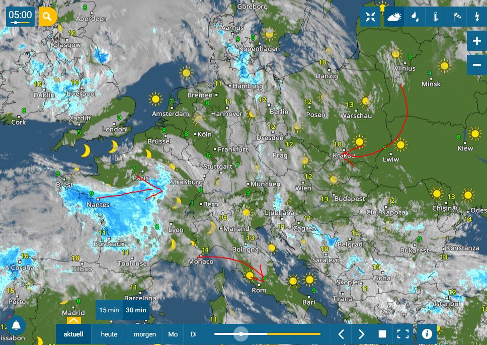 Halbwegs rechtzeitig dran, und Mann, ist das 'ne Suppe da draußen. Nahezu windstill, wenig Bewegung, und wer im Süden wohnt, hat zumeist Glück, da bleibt es dann sonnig den Tag über.
