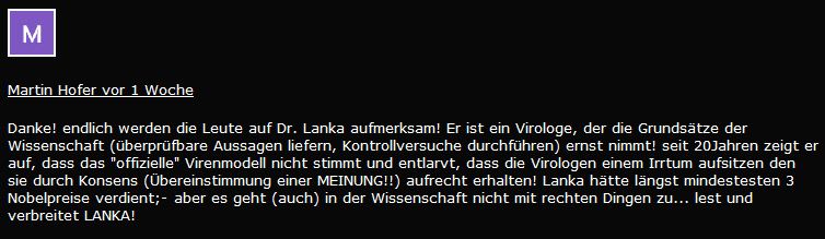 Doch, um den Bogen zurück zu spannen, es kein Zufall sein dürfte, dass es einen stefan lanka gibt, der sich schon sehr früh mit der Pseudo"wissenschaft" "Virologie" befasste, und so eine gewisse Vorlaufzeit hatte, um in diesen Zeiten ausreichend, also die nötige Wirksamkeit zu haben. Da kommt ein "alter" Gedanke von mir wieder hoch, nämlich der des Ausgleichs. Dass irgendwie immer ein Ausgleich da ist.