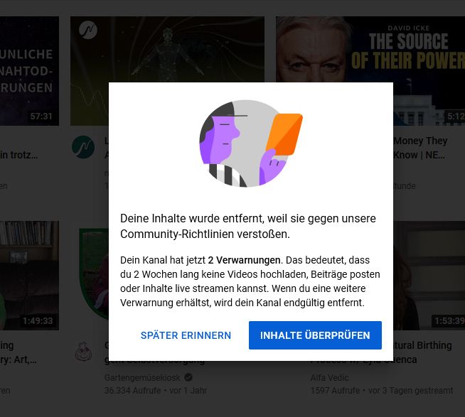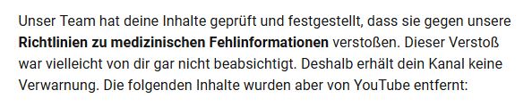 Und um 2.00 morgens wurde dann das nächste Video entfernt, es geht nicht mehr lange, weil ja jedes meiner Videos die "Narrative" verletzt ...