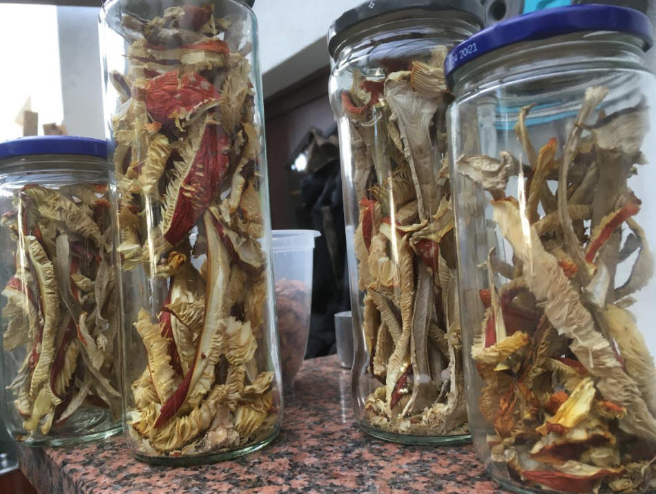 21.00 bis 09.00 Uhr gepennt, mit kleinen Unterbrechungen, Spät dran, aber ich sehe gerade in der Rückschau, dass die Sonne ohnehin erst um ~ 08.00 Uhr durchgekommen ist, also nicht so viel verpasst. Gestern war kleine Wald- und Wiesenpilzkunde, und ich habe jetzt aus 6 voll belegten Blechen des Dörrautomaten ganze 4 Gläser vom Fliegenpilz "herausbekommen", Verwendungsart und -Zweck noch unbekannt.