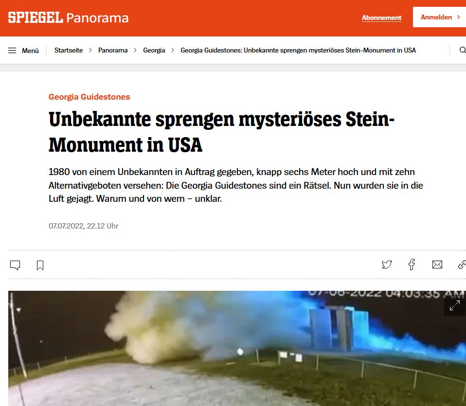dass die "1st Grade Truther-Steine", die "Giorgia-Guidestones" "gesprengt"