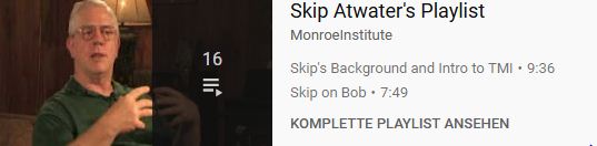 Doch hatte ich keine Ahnung, wie gut dieses Interview ist. Es liefen dort für mich teilweise so viele Fäden mit einem Male zusammen, dass es mir schlicht zuviel wurde, ich dann das Interview stoppte, innehielt, und dann nach 10-15 Minuten wieder weiter machte. Man gewinnt auch einen sehr guten Einblick, wer bob monroe war, und auch die gesamte Historie des Monroe-Instituts beginnt sich zu einem Bild zu formen.