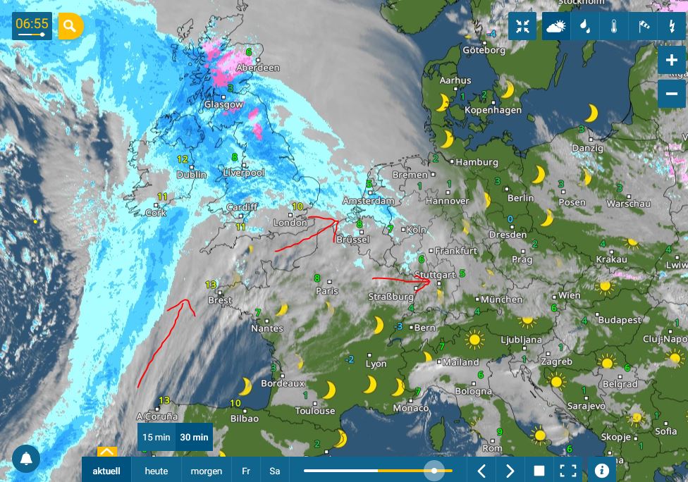 07.48 Uhr, 10.9°C in der Bude, fit und mit heißem Tee gut auszuhalten. Gestern und heute vornehmlich der Süden sich über Schnee freuen kann