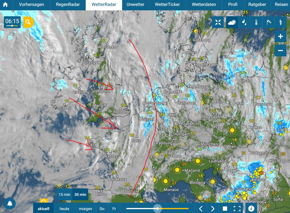 gestern wird es stabil sonnig bleiben zwischen den 3 großen "Wetterblöcken",